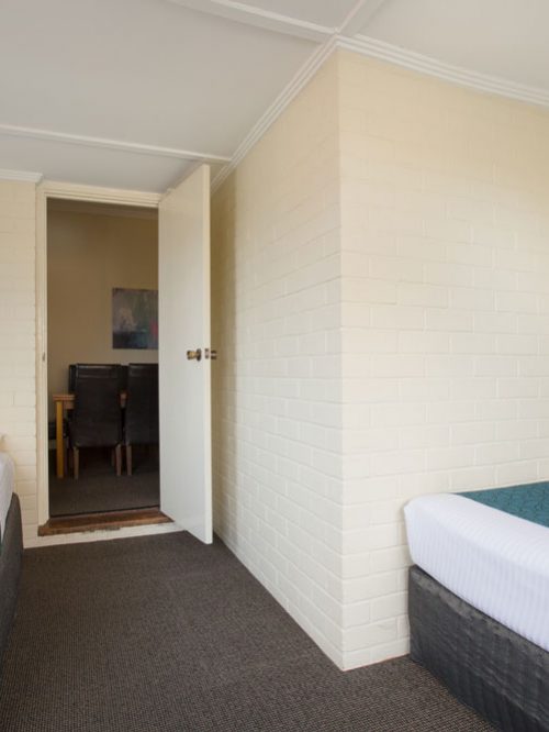 Main room with sofa, TV, table and chairs and air-conditioning/heating. First bedroom with King bed. Second bedroom with three single beds. Third bedroom with double bed. Alcove with 2 single beds. Ensuite Bathroom and fully equipped separate kitchen.